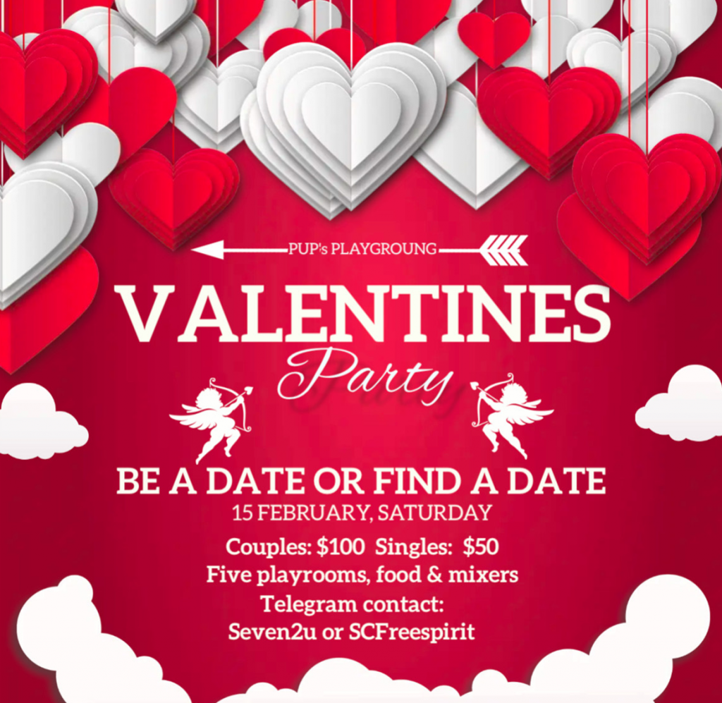 Join us for a spicy evening with Valentines Themed playrooms. There will be a mix of couples and singles enjoying good music, food and multiple playrooms.